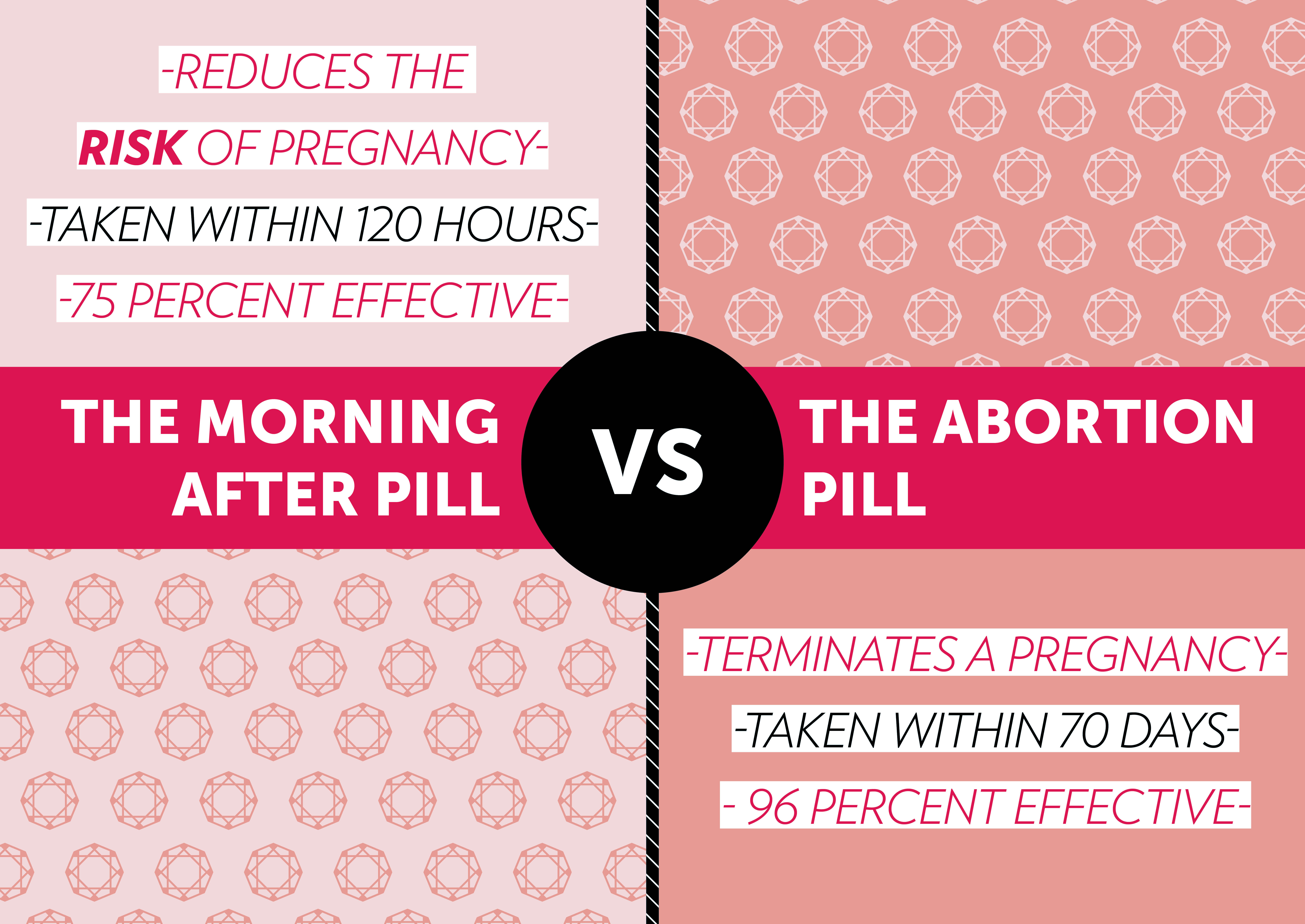 There is often confusion and misconception about the morning after pill and how it is different than the abortion pill. The single biggest difference is that the morning-after pill does not terminate an existing pregnancy. It is only used as an emergency contraceptive to reduce the RISK of getting pregnant.